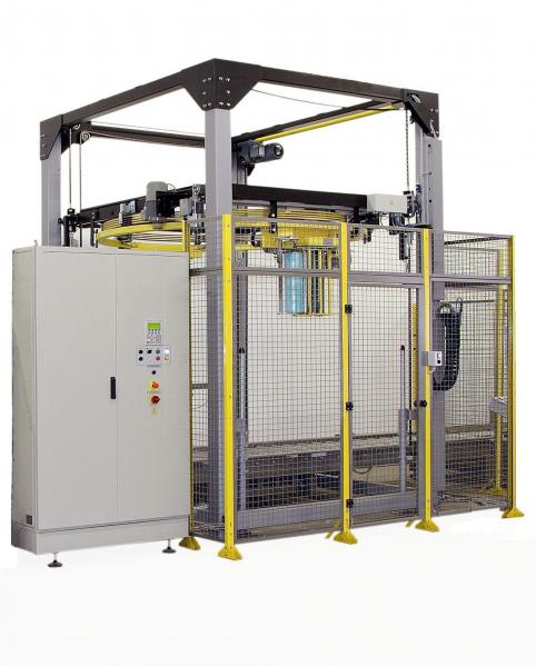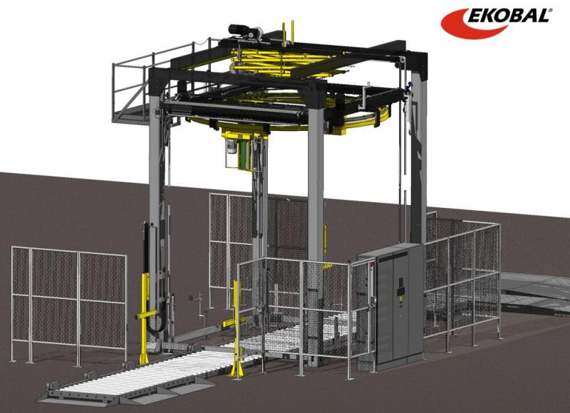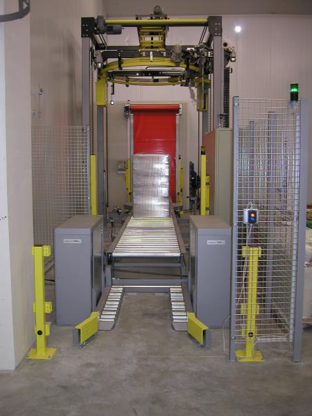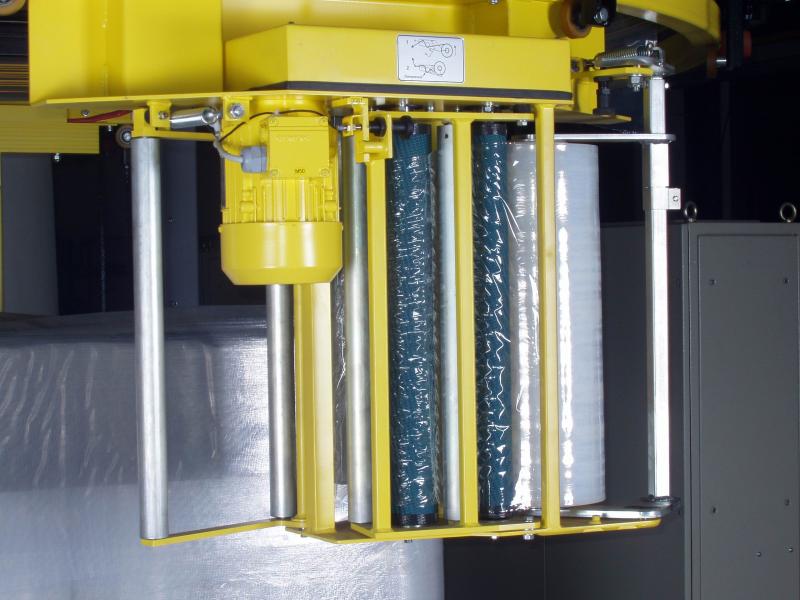 Plně automatický ovinovací stroj pro zařazení do dopravníkových tratí. Vysoká produktivita stroje je umožněna technologií balení při níž balená paleta není otáčena jako u standardních strojů, ale je ovíjena vysokou rychlostí rotující fólií kolem této palety. Při tomto způsobu balení na paletu nepůsobí žádné dynamické síly. Stroj je schopen po najetí palety se zbožím automaticky spustit cyklus balení, tuto paletu zabalit a vyslat signál o ukončení balení. Výchozí poloha balení je libovolná čímž je umožněna fixace pouze horního nebo spodního okraje zboží nebo zpevnění uprostřed balené palety. Vysoká kvalita všech typů balení (jednoduché, křížové, prachotěsné a vodotěsné) je ještě zlepšena možností tepelného spojení konce fólie s posledními vrstvami fólie na balené paletě.