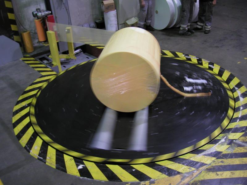 Určený do provozů pro balení rolí papíru, rolí svinutého plechu, rolí různých druhů tkanin s velkým návinem do průtažné fólie zejména v papírenském a textilním průmyslu. Balení do průtažné fólie dokonale chrání zboží před povětrnostními vlivy (proti vodě, vlhkosti, prachu), mechanickému poškození a zvyšuje úroveň vzhledu Vašeho zboží a to při minimální spotřebě fólie, i minimální cěně obalu.