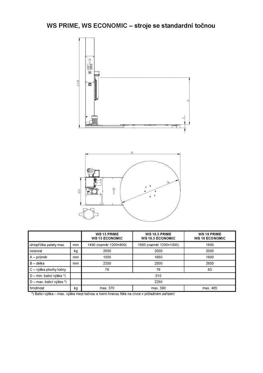 WS Economic je poloautomatický ovinovací balicí stroj s plnou točnou, dvěma plně volitelnými programy s funkcí jednoduché a křížové balení. V programu je možno nastavit napnutí fólie, protažení fólie, hustotu ovinu, rychlost otáček točny, samostatně počet ovinů na horním a dolním okraji baleného zboží. Stroj se vyznačuje velmi jednoduchou obsluhou a přehledným ovládacím panelem, řídícím systém stroje umožňuje balení v automatickém nebo ručním režimu.