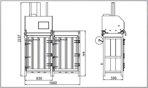 Lisy stabilní konstrukce s pevnou lisovací komorou, na které je uložená posuvná lisovací hlavice. Přítlak je realizován hydraulickým válcem s možností regulace přítlačné sily, což zaručuje dlouhodobou spolehlivost při dosažení vysokého měrného tlaku. Lisovací prostor je plněn z vrchu. Systém předních dveří a vyklápění balíku umožňuje jednoduché vyjmutí zlisovaného balíku z lis. komory. Konstrukce komory umožňuje 2x svázání balíku vázací PE páskou nebo drátem. Lis je koncipován pro možnost rozšíření počtu lisovacích komor při jedné lisovací jednotce (zvýšení kapacity lisu s min. pořizovacími náklady, třídění lis. materiálu).