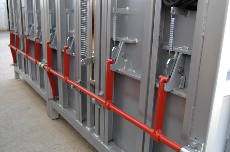 Lisy stabilní konstrukce s pevnou lisovací komorou, na které je uložená posuvná lisovací hlavice. Přítlak je realizován hydraulickým válcem s možností regulace přítlačné sily, což zaručuje dlouhodobou spolehlivost při dosažení vysokého měrného tlaku. Lisovací prostor je plněn z vrchu. Systém předních dveří a vyklápění balíku umožňuje jednoduché vyjmutí zlisovaného balíku z lis. komory. Konstrukce komory umožňuje 4 a 2x svázání balíku vázací PE páskou nebo drátem. Lis je koncipován pro možnost rozšíření počtu lisovacích komor při jedné lisovací jednotce (zvýšení kapacity lisu s min. pořizovacími náklady, třídění lis. materiálu).
